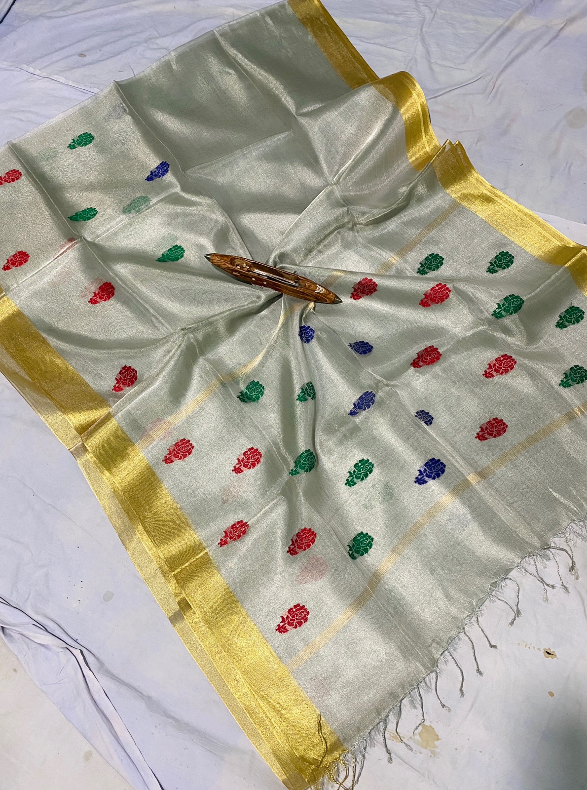 Pure Tussar Tissue with buta and heavy jala